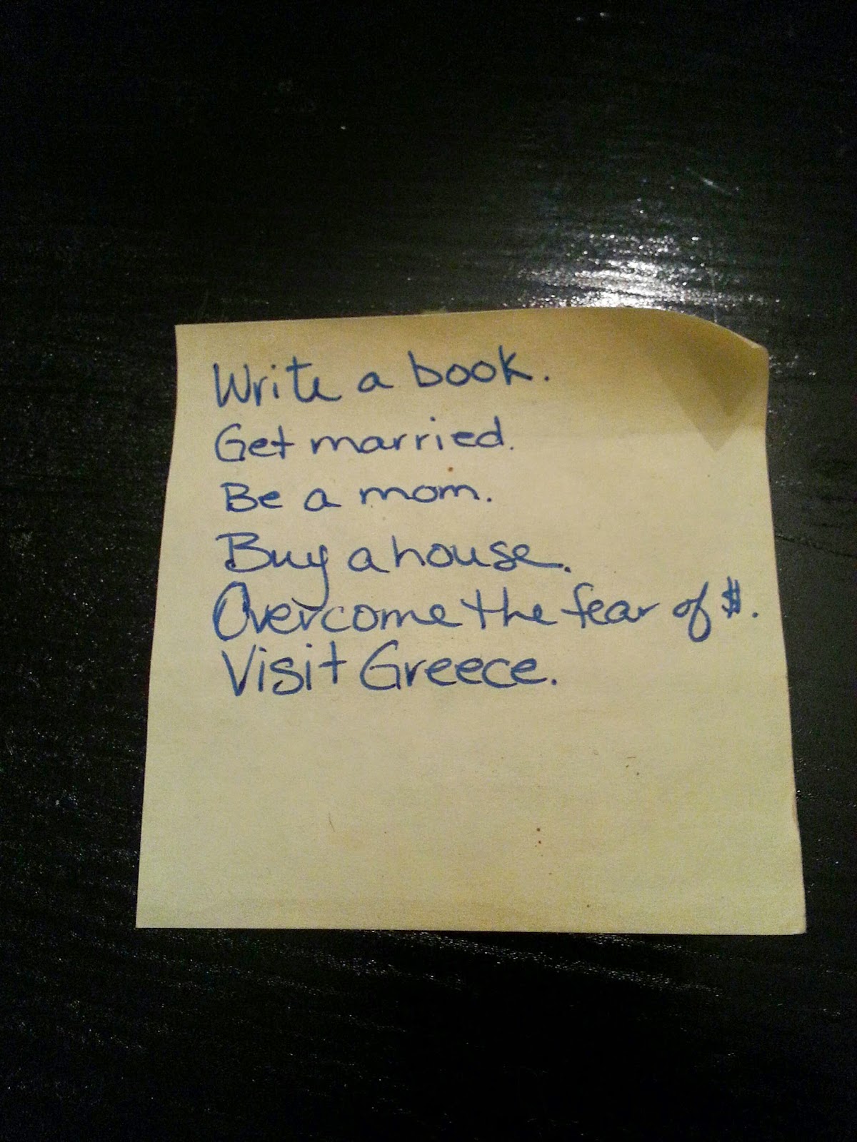 This is a list of my top six goals in life. I keep this post-it note on my laptop and have had it for some time now. It's lost its stickiness, but for some reason I've held on to this instead of creating a new one.